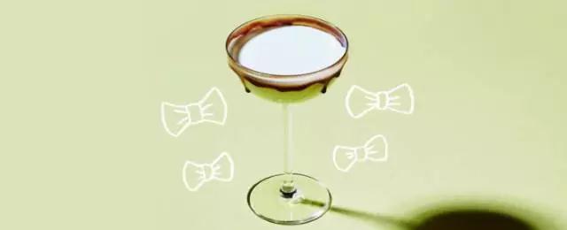 本來(lái)是白巧克力馬天尼,將杯邊粘上一圈黑巧克力,變成了這款黑領(lǐng)結(jié)馬天尼了。