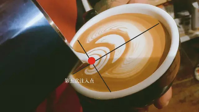 距第一個圖案2~3cm開始第二次注入,左右均勻擺動。待第二個圖案形成后,在第二個圖案前方1~2cm的位置開始向前推送注入蒸汽牛奶。