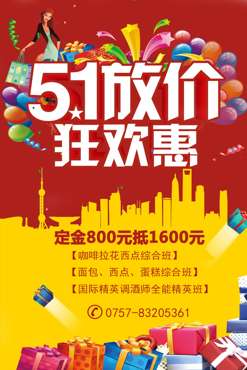 “ 佛山展翅五一預報名優惠活動”:在活動期間,繳納定金800元可以享受定金800抵1600的活動,優惠活動僅限綜合課程,也就是報名以下綜合課程可以獲得優惠800元的福利哦。如果還沒有想好學習哪個課程,可以先繳納定金800元,等想好了再來學校報名交齊剩下的學費。