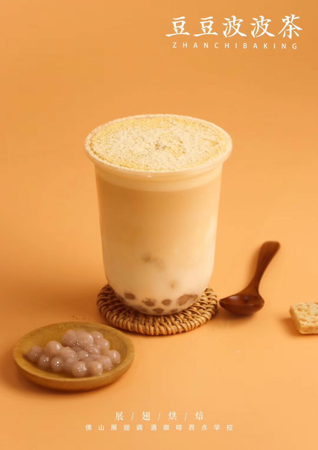 覆以秘制豆乳奶蓋與芋圓波波,