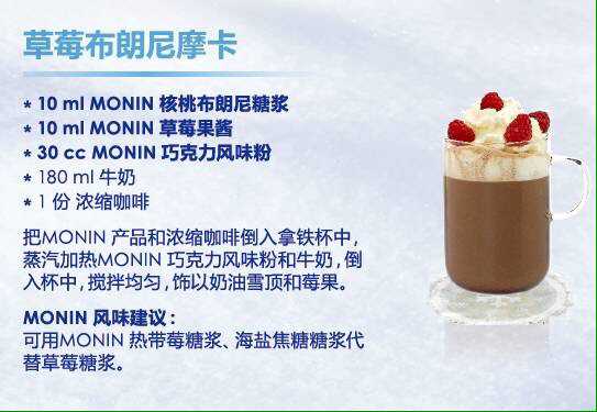 MONIN不僅有可口的冬季熱飲,還有精彩絕倫的雞尾酒,源源不斷的創(chuàng)新飲品概念,隨時(shí)打造一杯無論視覺還是味覺也同樣華麗的熱巧克力或咖啡飲品。